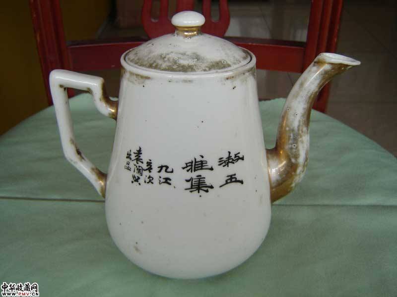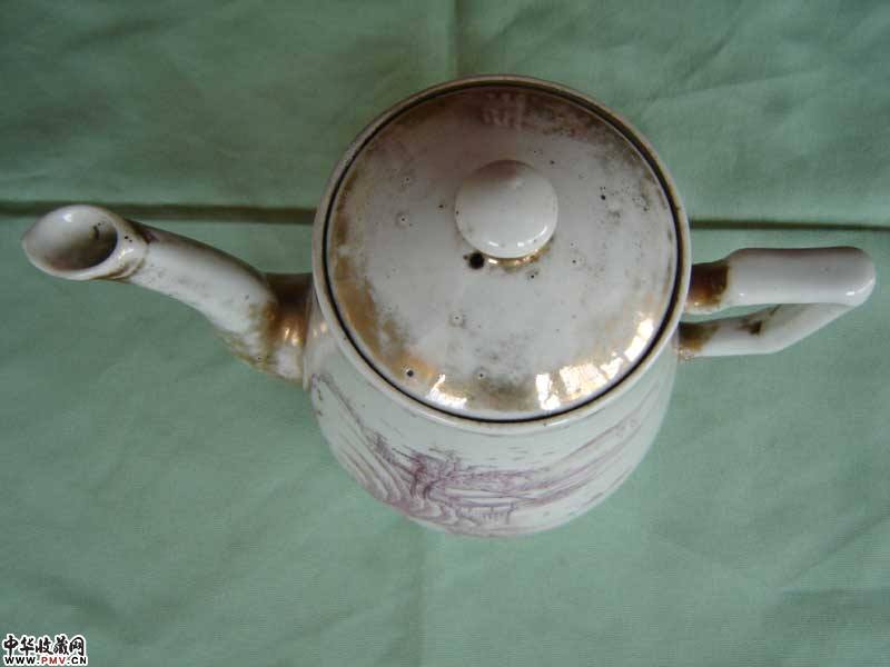 民国袁陶兴胭脂红山水壶