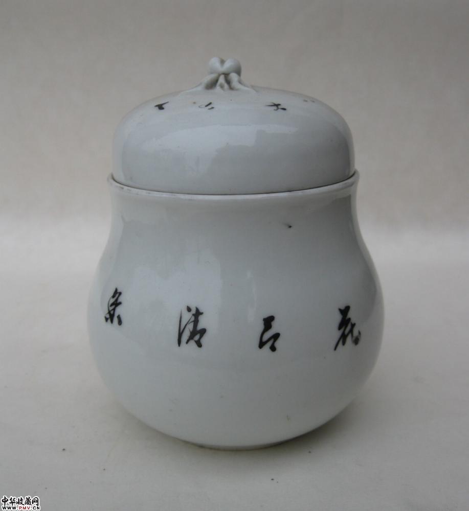 民国料彩花卉纹温酒器,釉色莹润,胎质细白,画工精细,全品相,高10.8公分,口径7.4公分.