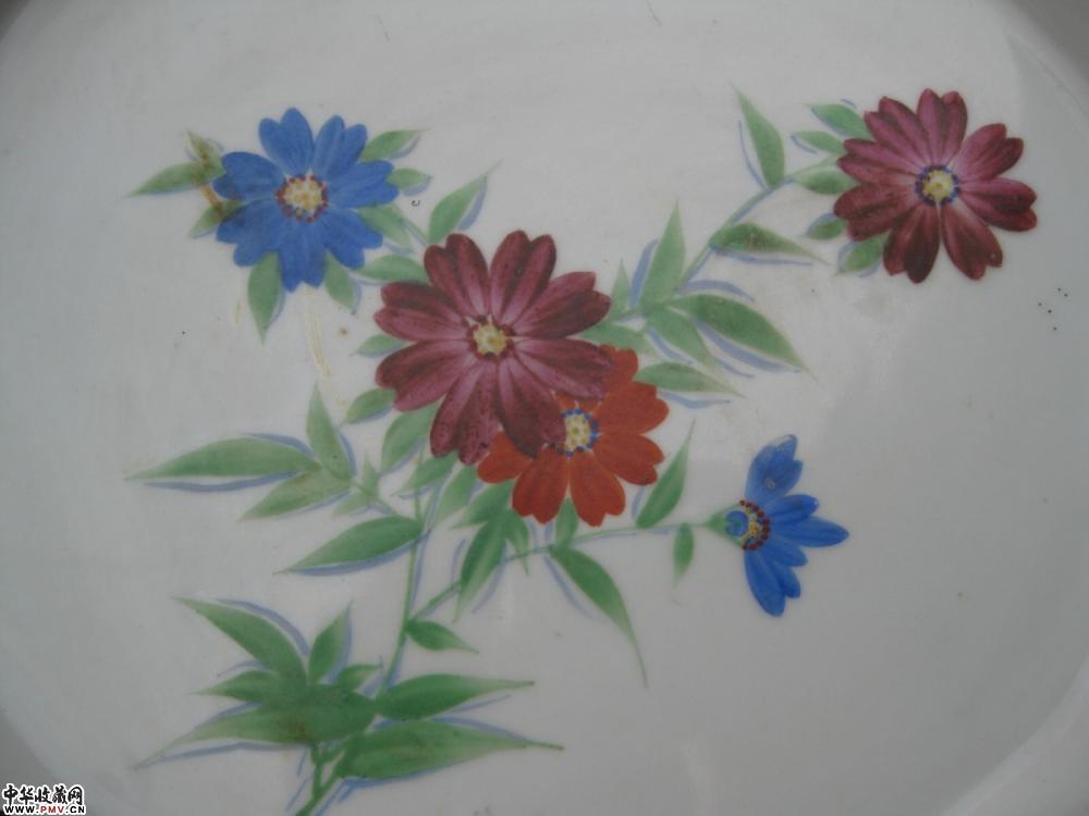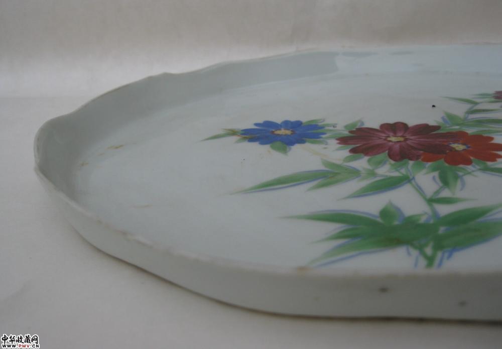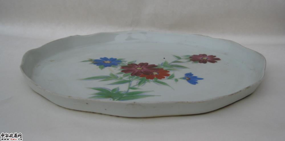 民国花卉纹茶盘一只,釉色莹润,胎质细白,画工精细,全品相.口径长28公分,宽25.4公分.