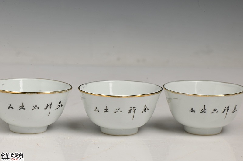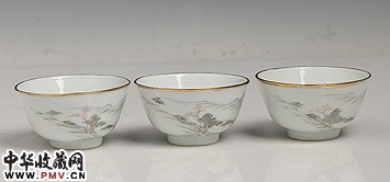 民国 浅绛彩山水风景碗三只