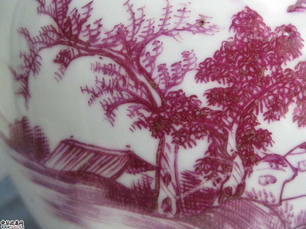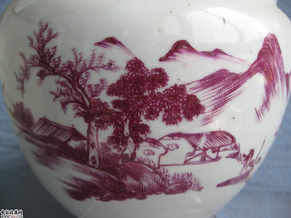 民国胭脂红山水纹粥罐一只,釉色莹润,胎质细白,画工精细,底款:江西新茂公司,看上去崭新的,符合真精新的原则,全品相,缺盖,口径17公分,高15.2公分.