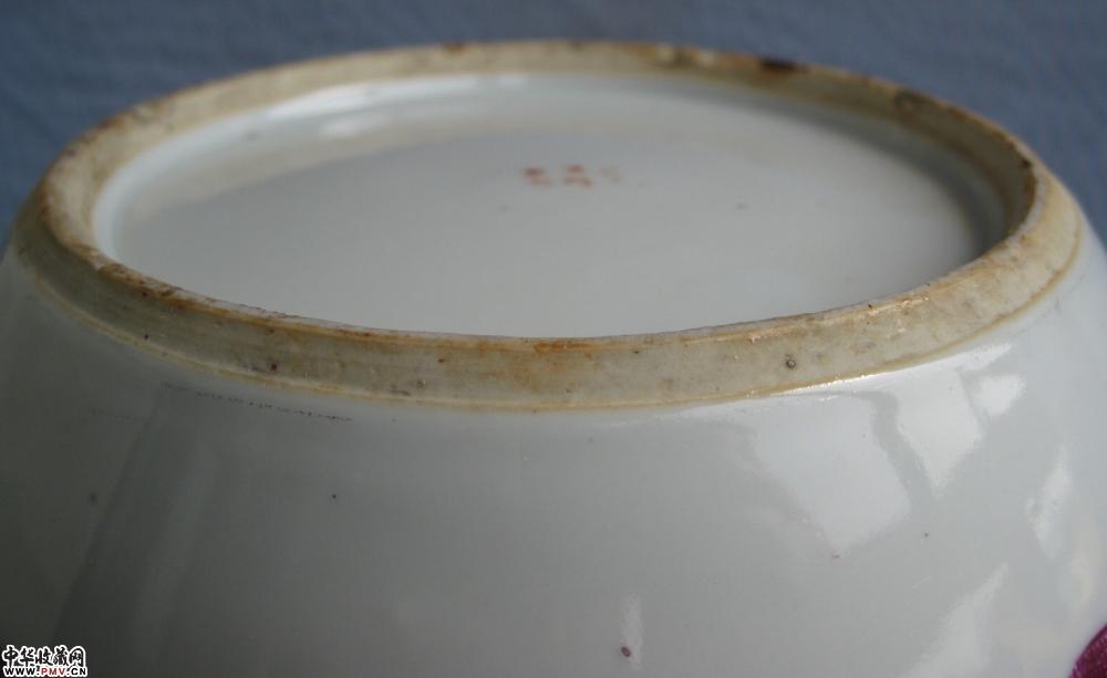 民国胭脂红山水纹大号粥罐一只