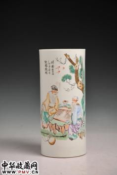 民国 粉彩贰寿戏棋帽筒