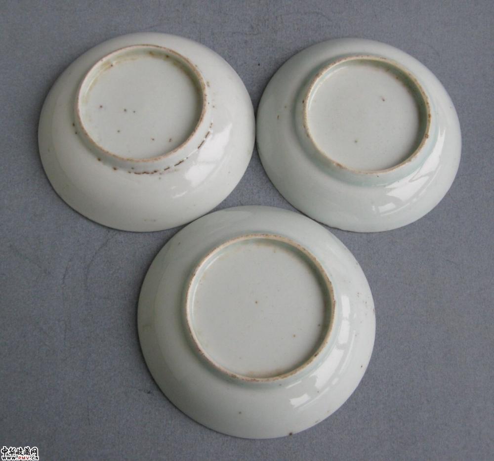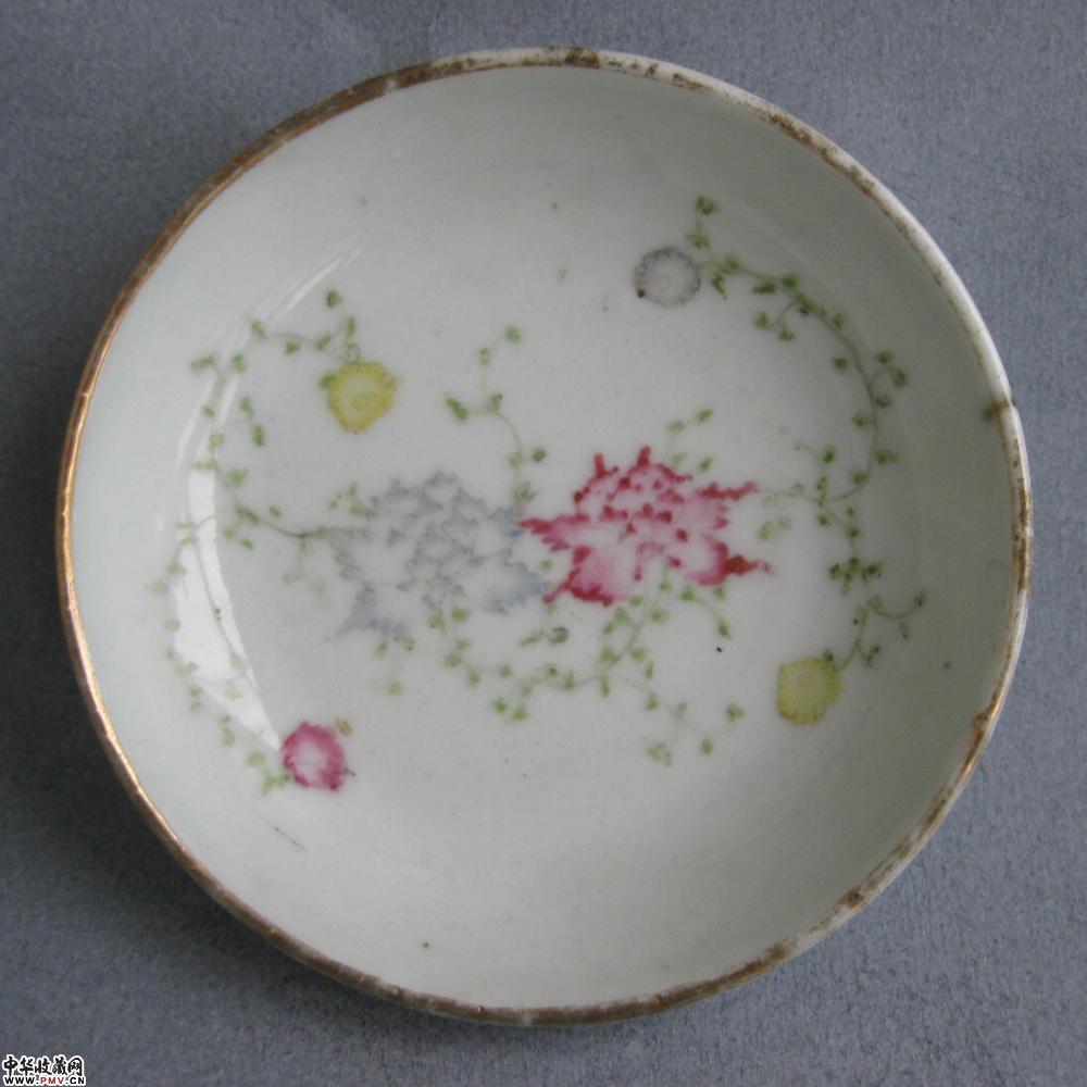 晚清民国粉彩花卉碟三只,釉色莹润,白中闪青,画工洒脱,口沿描金,胎质细腻,全品相,口径9.5公分.