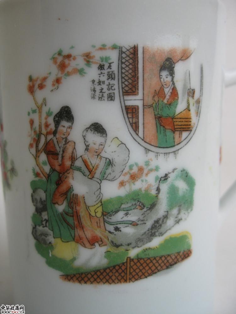 民国石头记题材粉彩执杯一只,釉色莹润如玉,胎质细白,器形规整,底款:江西王永昌,口沿有一小重皮,不是什么大问题,老器难免了,高10.7公分,口径7.7公分.