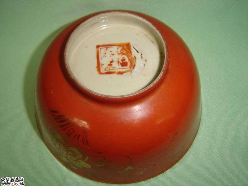 民国珊瑚红碗