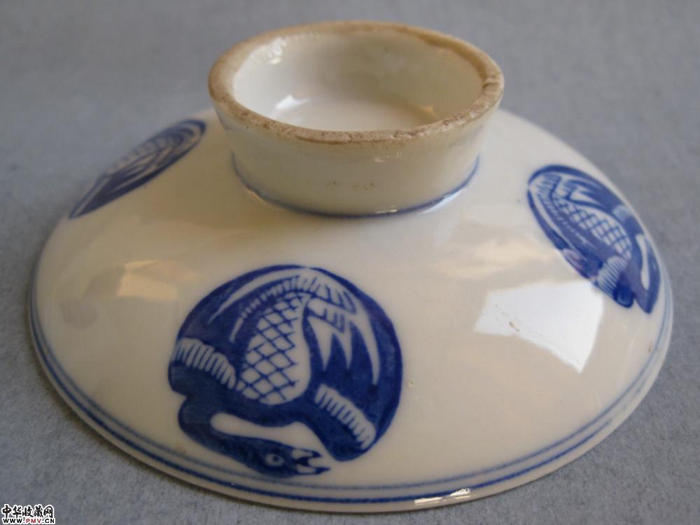 民国团鹤纹青花盖茶碗一套