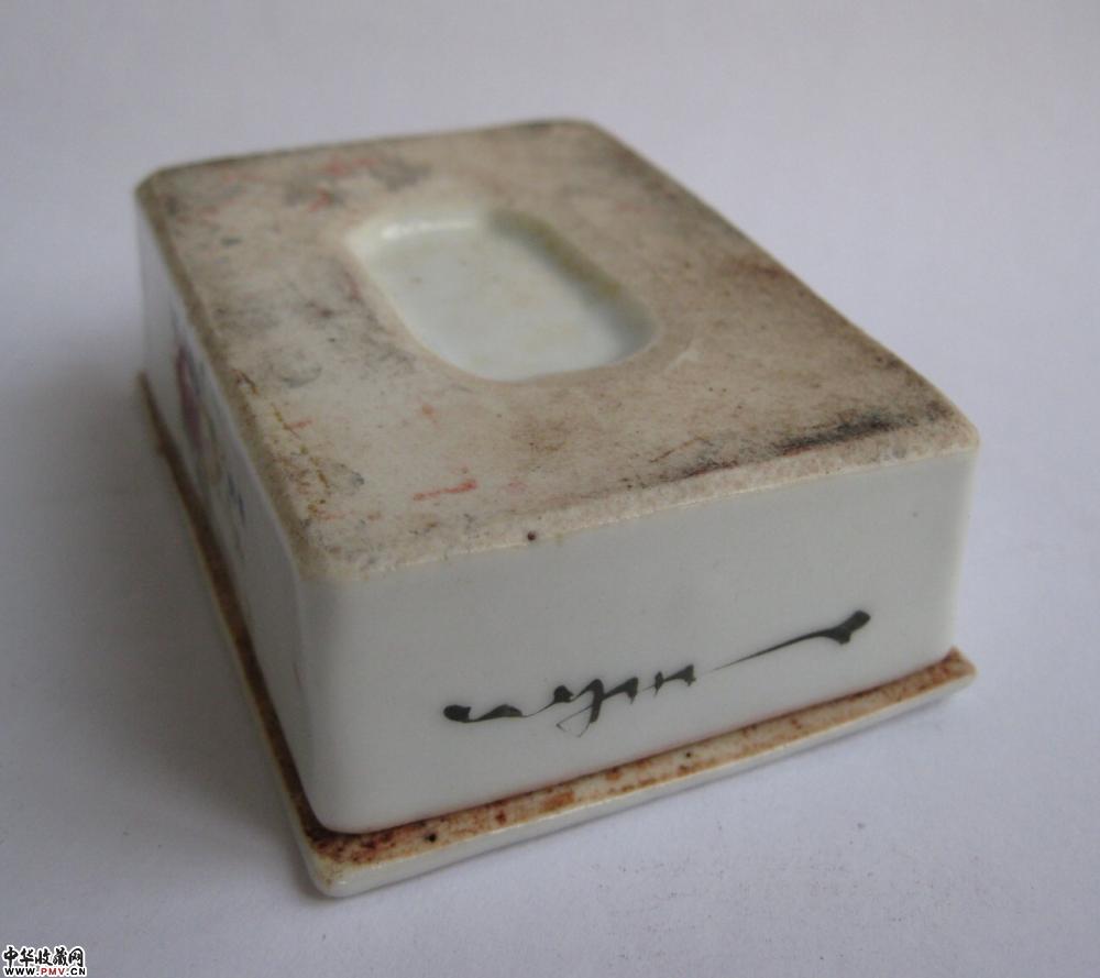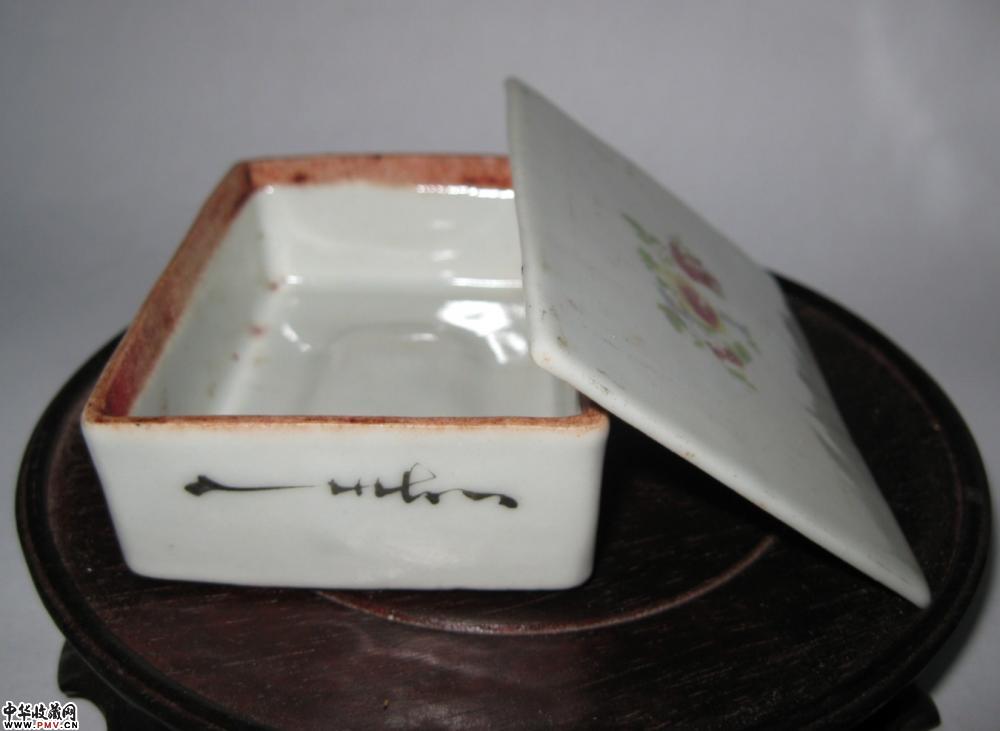 民国粉彩方形印泥盒一只,釉色莹润,胎质细腻,器形规整,一方抵十圆,全品相,长8.4公分,宽6.2公分,高2.8公分.