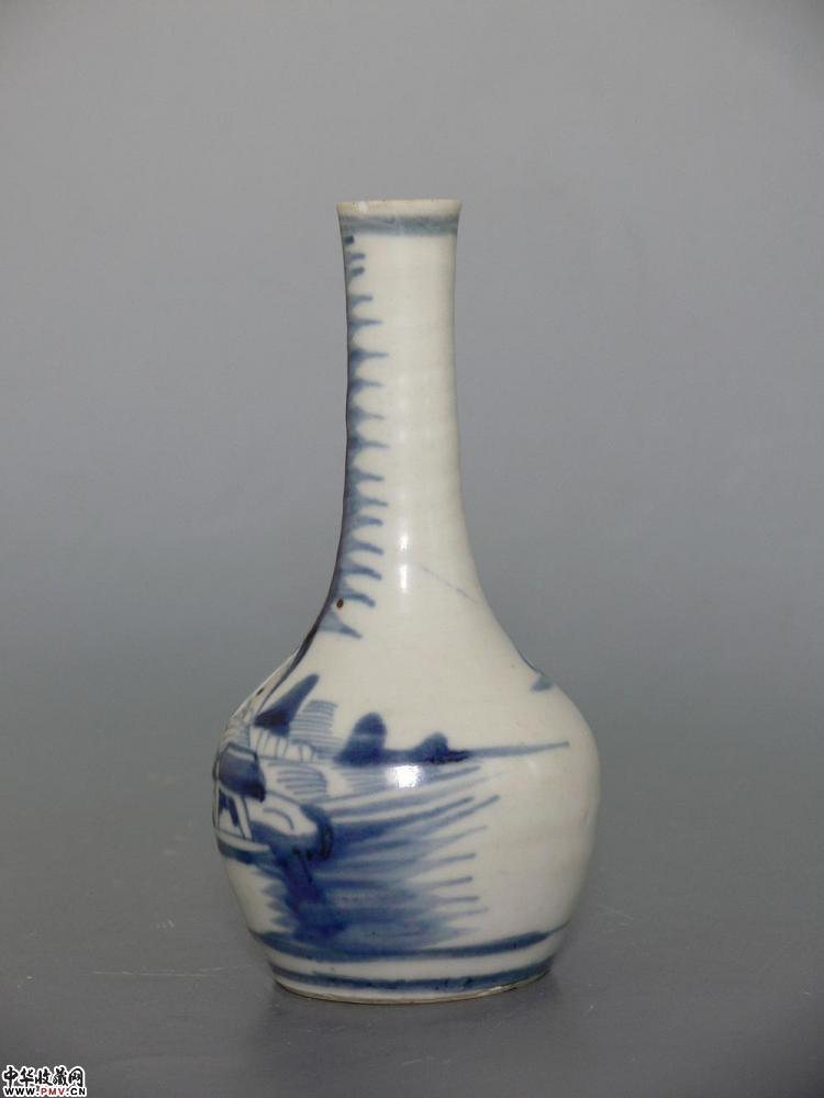 清道光青花山水纹长颈瓶