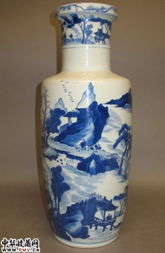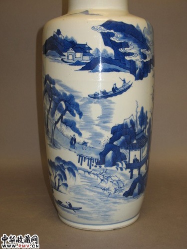康熙青花山水人物棒槌瓶 (双圈款)(已经转让)