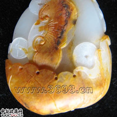 作品另一面亦用美艳的黄皮摘雕出一支硕大饱满的玉如意,更显喜庆祥和,讨人喜欢。