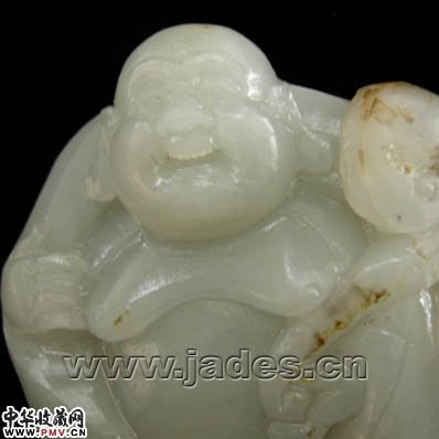 天然和田籽玉料,稍带润泽黄皮,皮润肉细,整体琢制的笑佛开怀乐观,祥和充盈。闲时手握盘玩,观赏那良好的雕工,体会那温润的玉体,是一种美好的享受。