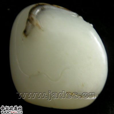 和田籽玉料有一种刚柔并济的气质,充满柔顺和美又显出刚韧其中。侧面玉表反射出来的凝聚光泽十分柔和润美。如果经过平整抛光,玉质内在的美就会显得更加莹润。