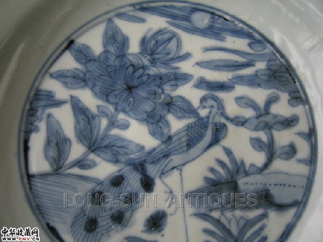 藏品介绍:这是一只明代万历时期漳州窑青花孔雀牡丹图盘,盘子的画工具有典型的明代特征,青花发色在漳州窑瓷器中应该算最好的。该盘釉水滋润、肥厚,由于采用浇釉工艺,盘子正反面都有一些淌釉,底足有些粘沙,这都是漳州窑的特点。品相:完美。