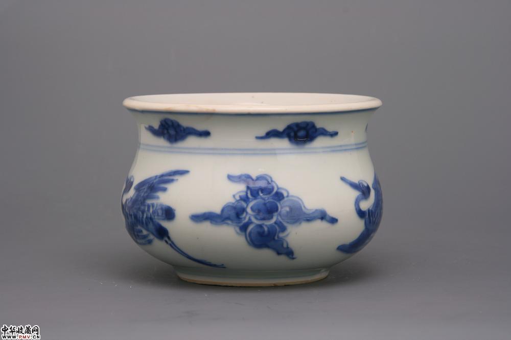 清康熙景德镇窑青花三云鹤纹炉
