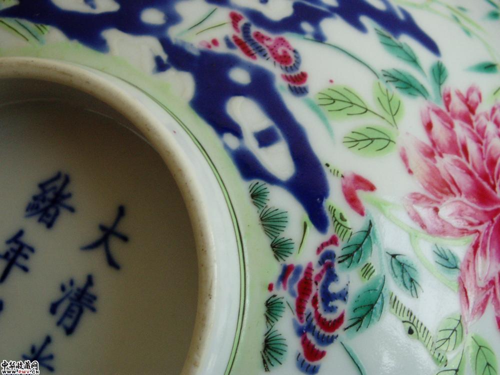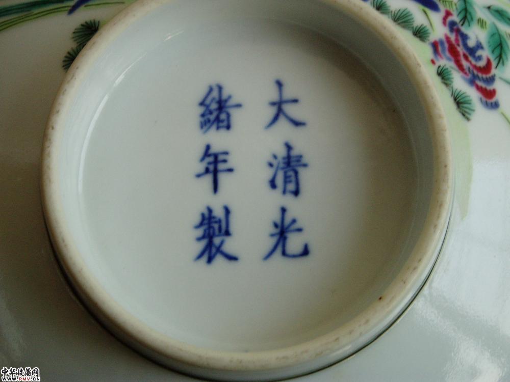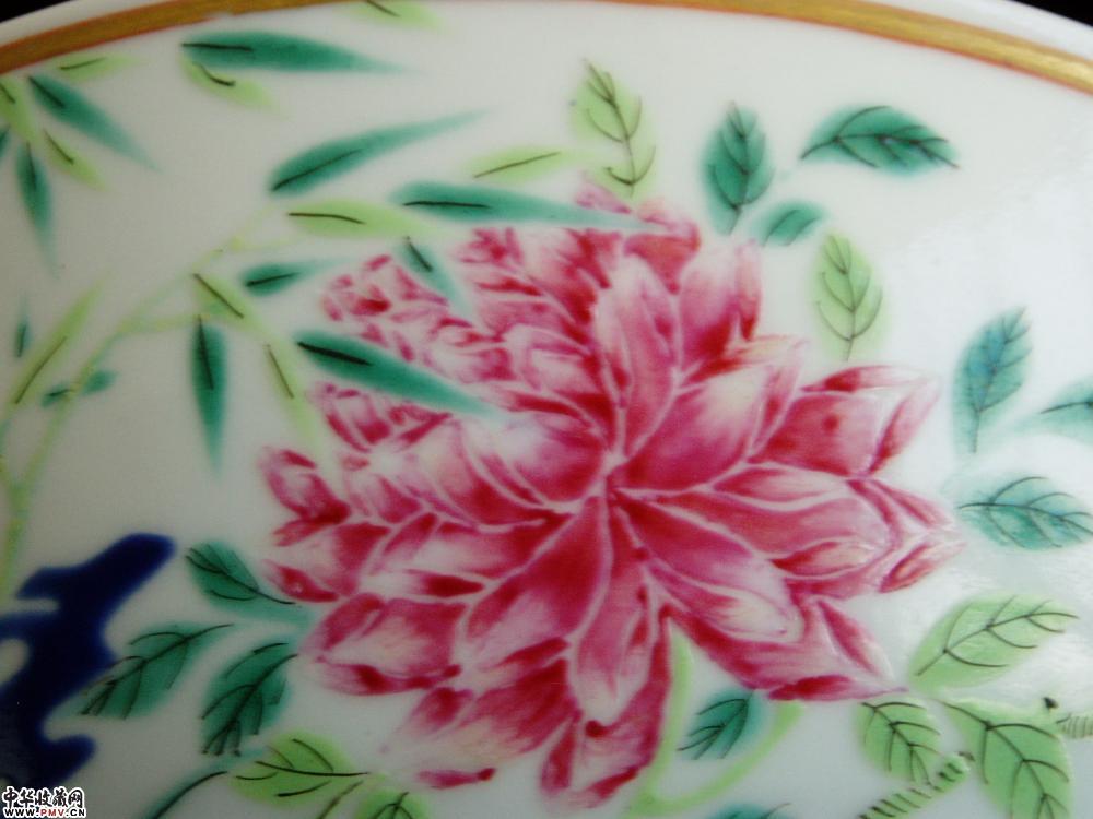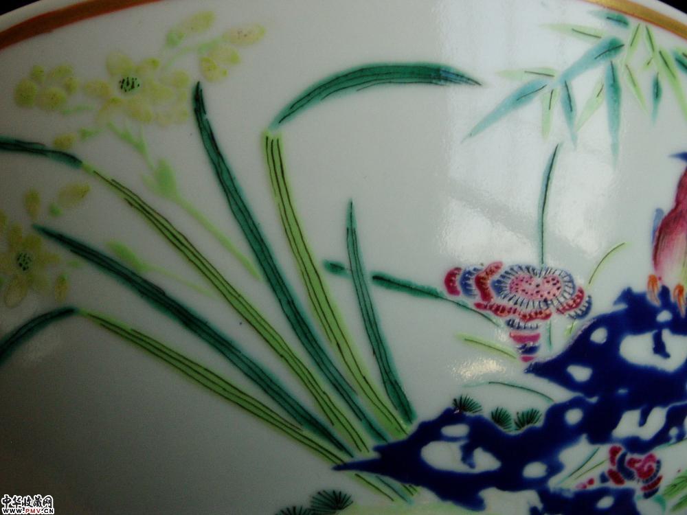清光绪 粉彩加料彩灵仙祝寿锦鸡碗 1对