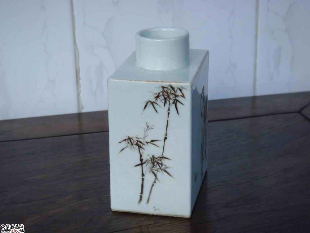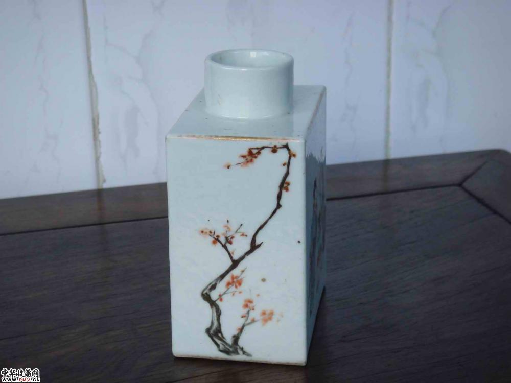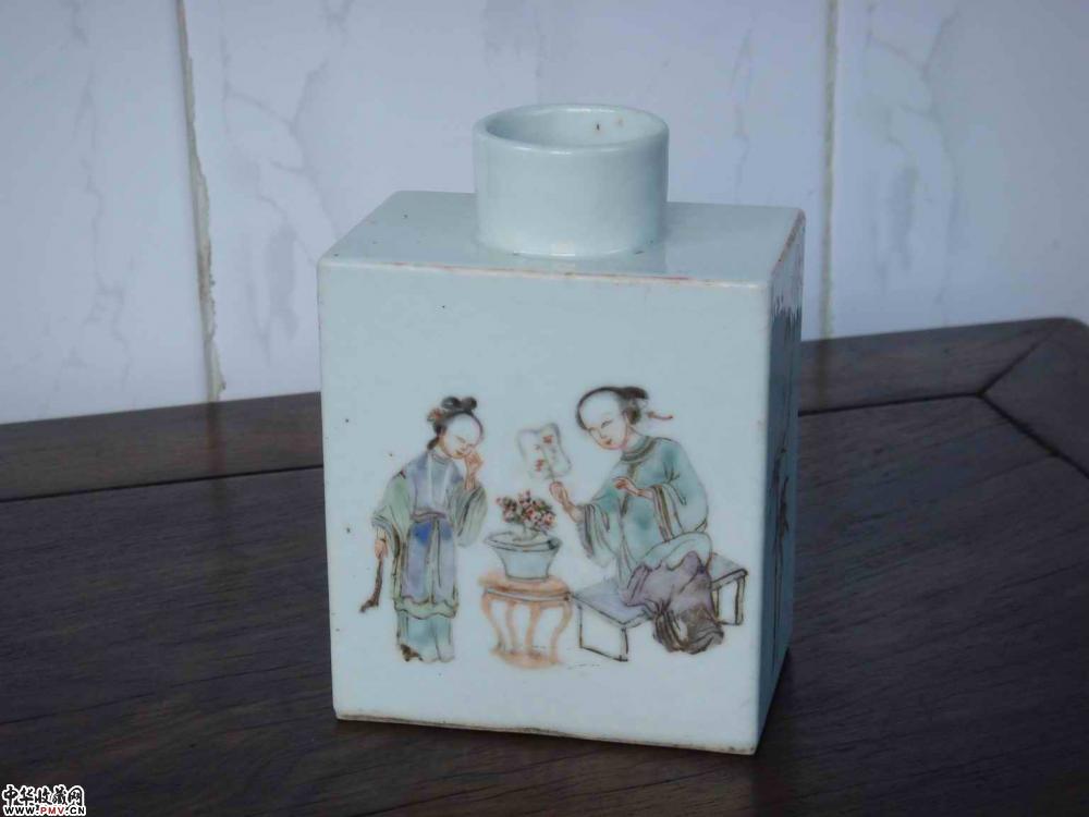 粉彩加墨彩人物罐