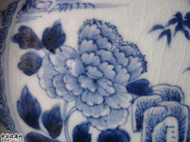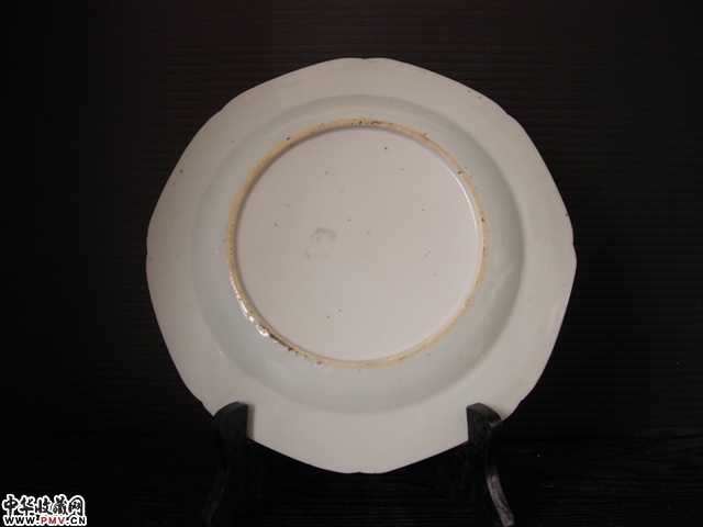 乾隆外销~八角牡丹,竹与菊花纹青花盘