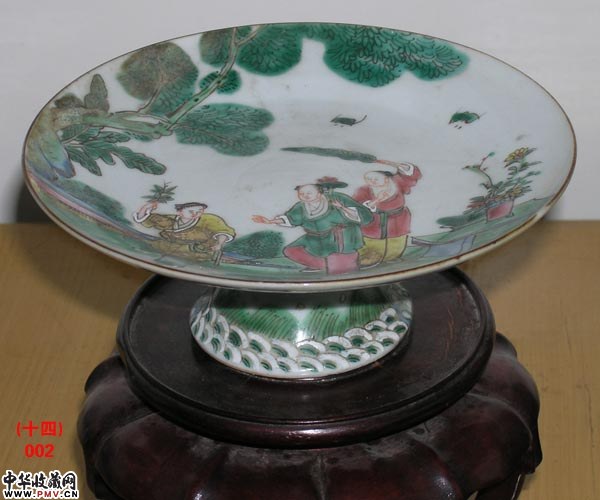(14)001-003 〖保真美品〗清五彩高脚人物盘盘径66mm高62mm