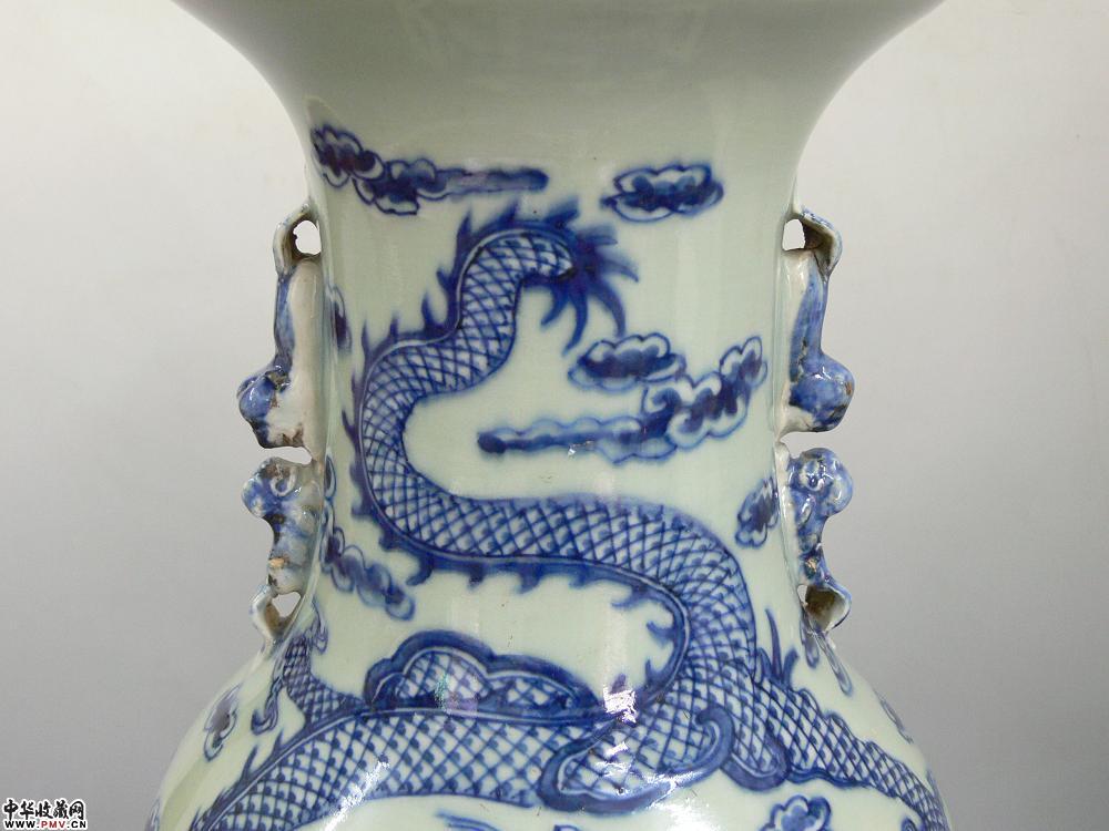 清咸丰景德镇窑青花苍龙教子纹狮耳盘口瓶