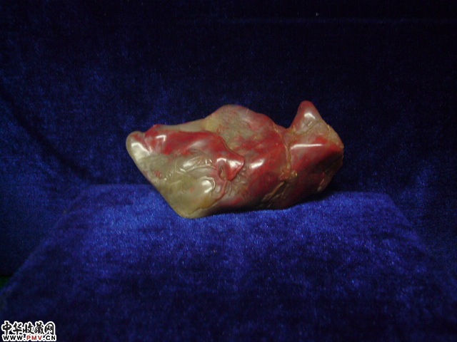 昌化鸡血石随形摆件。藕粉冻,清代。