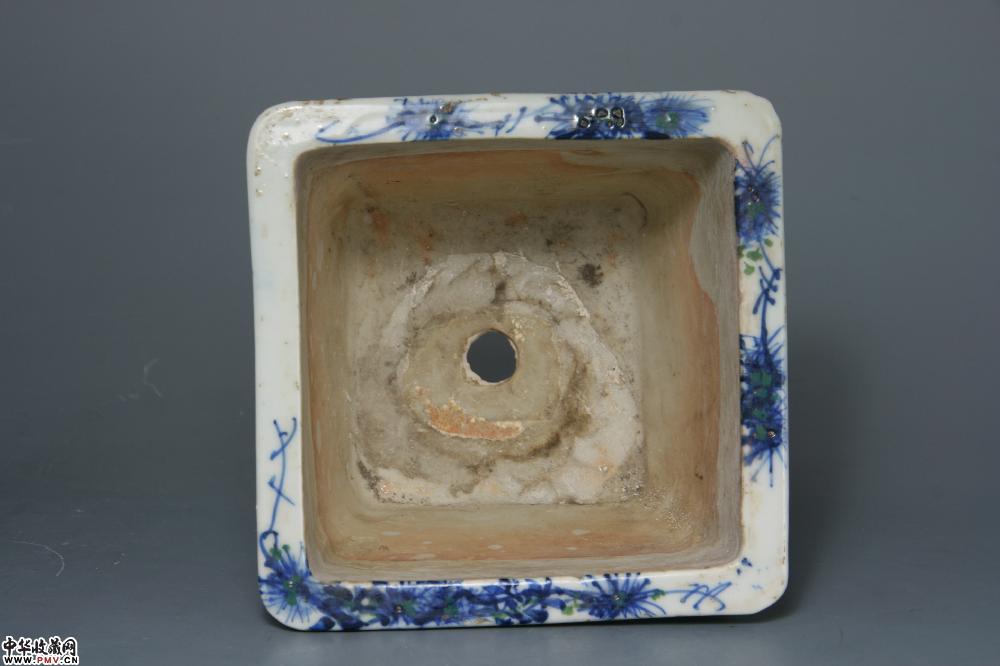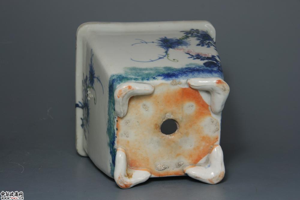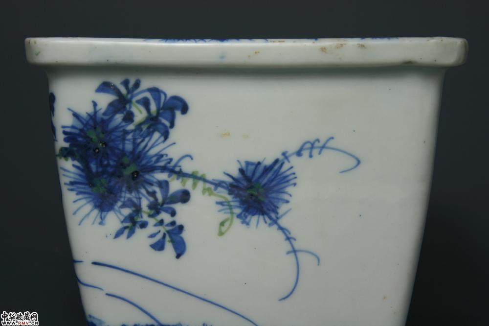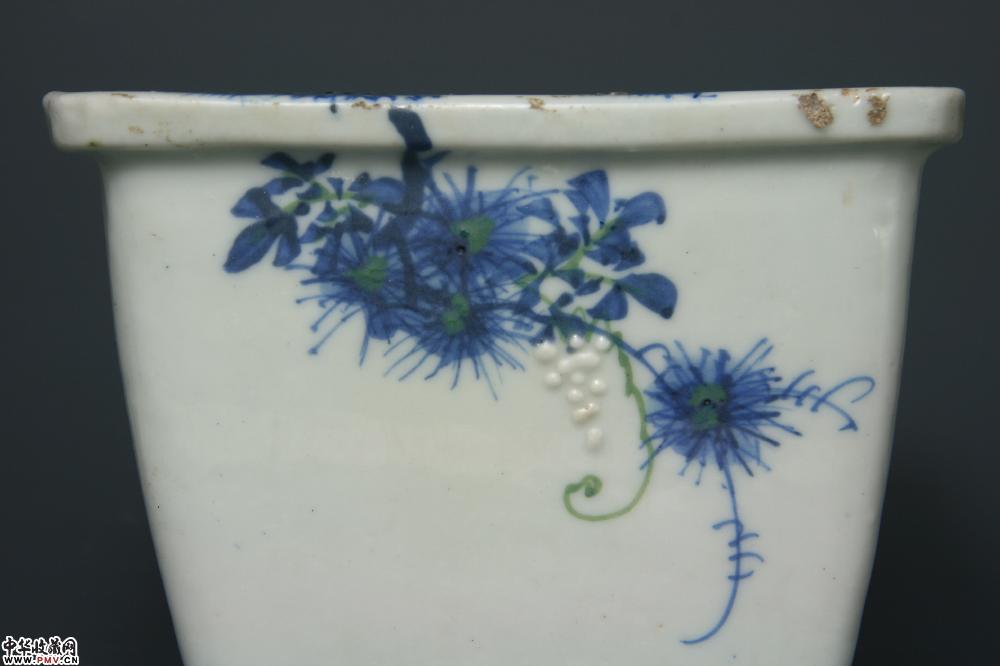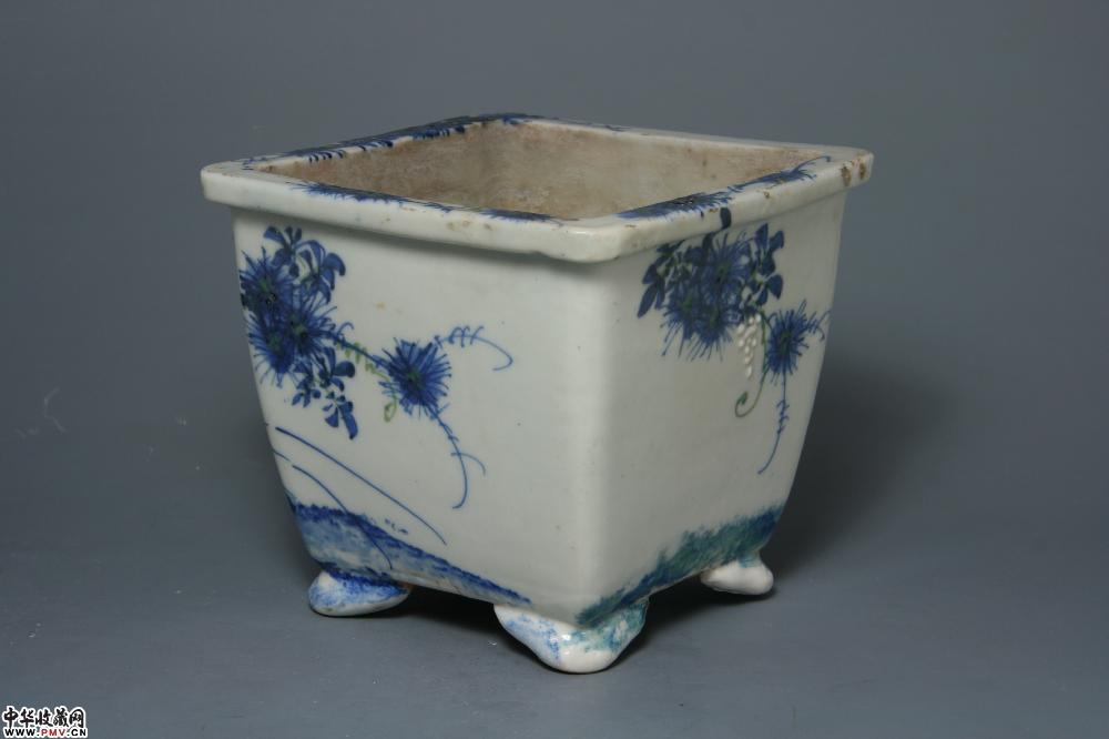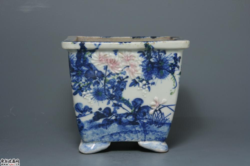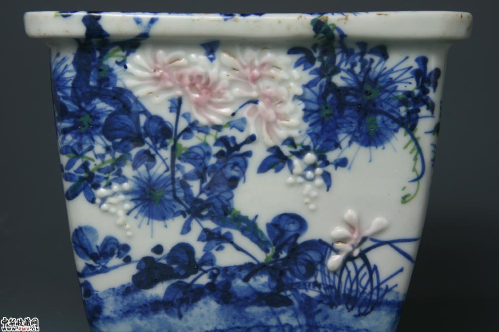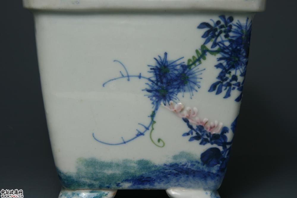 民国醴陵窑釉下彩绘花卉纹方花盆