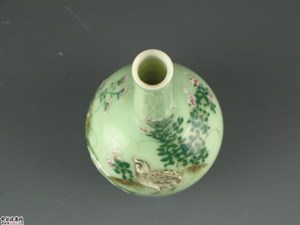 民国 豆青釉地粉彩花鸟胆瓶H16