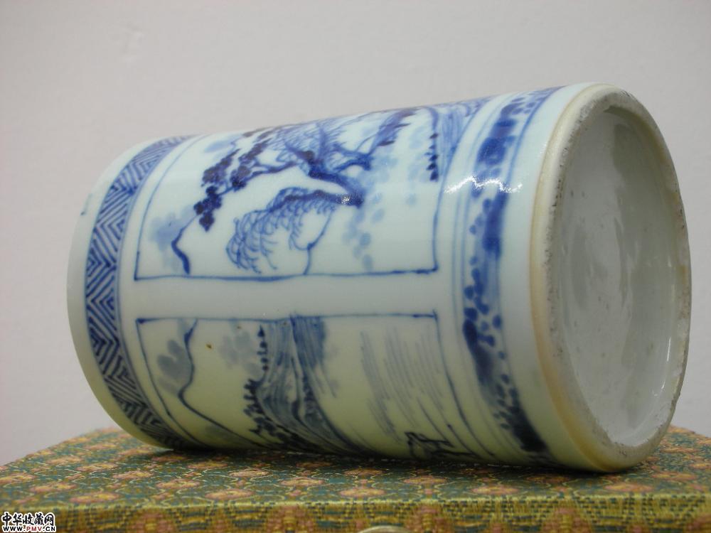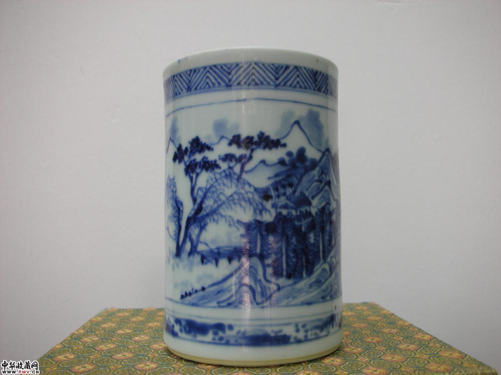 顺治青花山水笔筒....