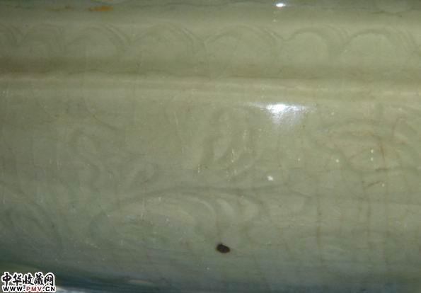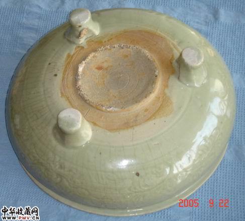 明代龙泉窑青釉刻花三足炉