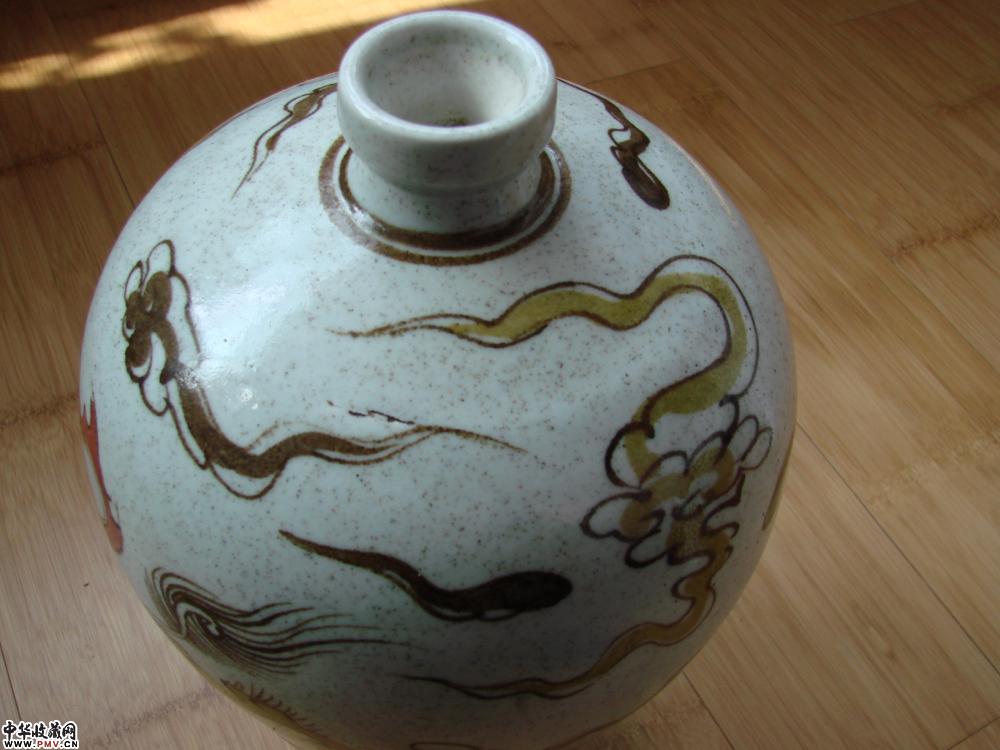明万历釉下三彩狮球纹梅瓶