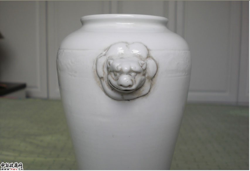 高23厘米,完好![底足有一出窑就有的划痕,无关紧要],整体造型制作规正,胎釉纯正,肩一周印花装饰,并用两狮头做两耳装饰,非常美观,希望大家喜欢!