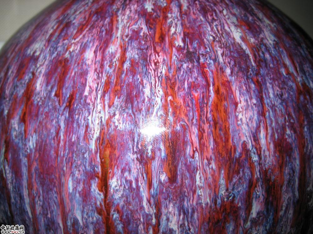 品相:完美,发色呈紫红斑,釉色绚丽,窑变如喷洒之态难觅2器,胎体厚重