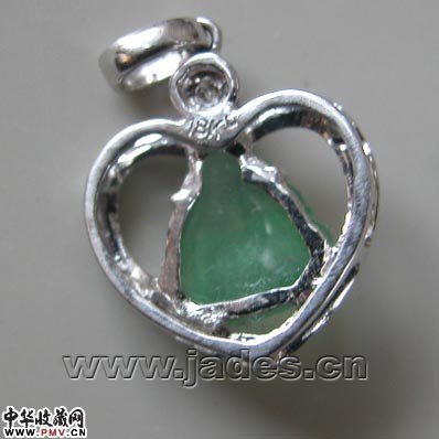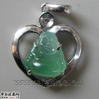 小玉佛娇小可爱,周边镶18K白金心形坠,故称心中有佛,金玉组合,更显尊贵典雅。