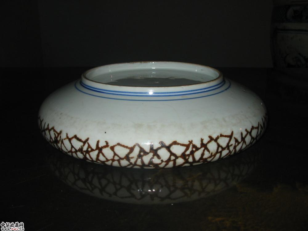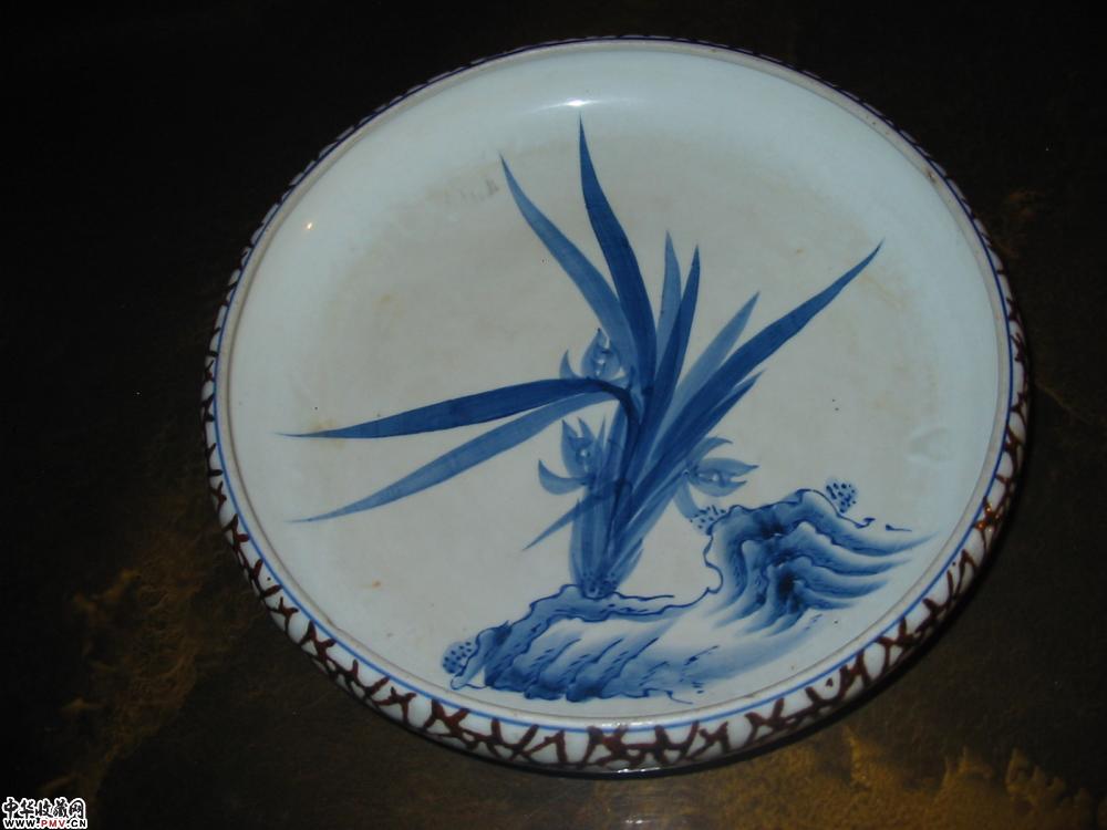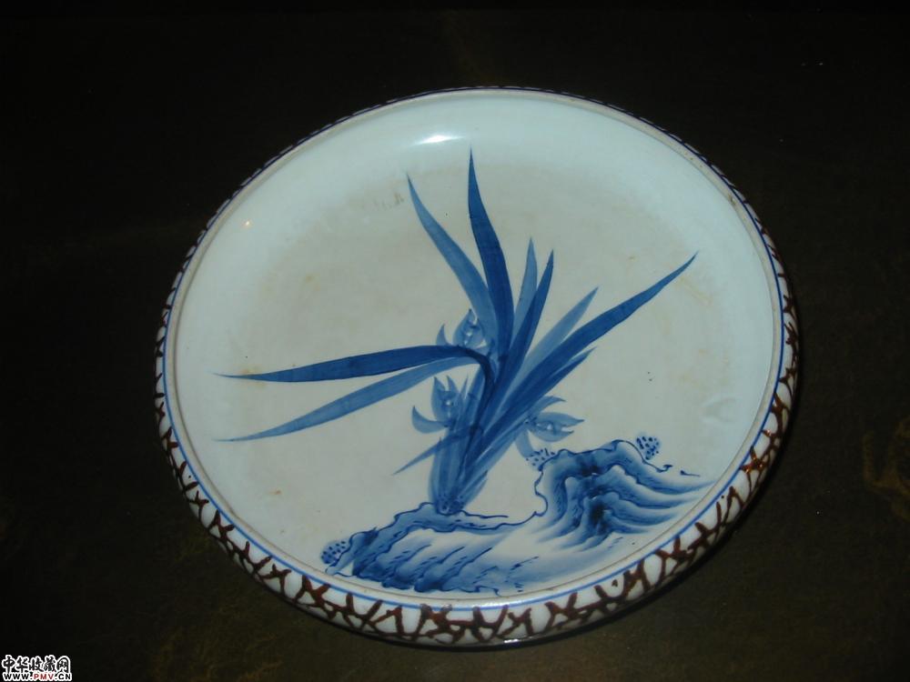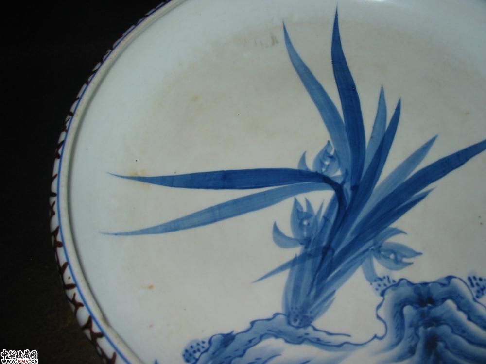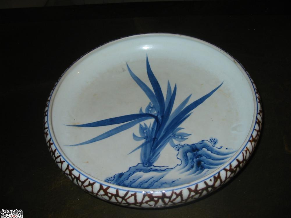 石纹青花兰草笔冼 高7公分,口径28公分,底18公分.