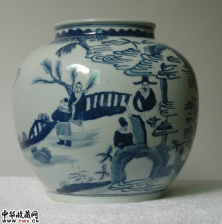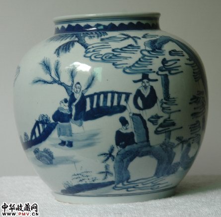 清康熙山水人物罐