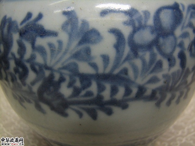 大开门,全品相,青花发色一流,除口沿下部有一缩釉外(如图),其他完好。
