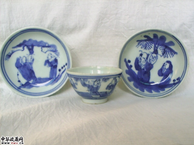 此拍品为清晚期出品的 青花福禄寿三仙图碟杯 青花发色纯正 画片漂亮 时代特征明显 品相佳 值得把玩