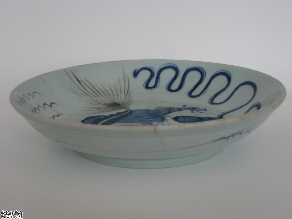 尺寸23.6,青花发色艳丽,釉面光亮莹润,可惜有两冲线,如图,请以480起拍