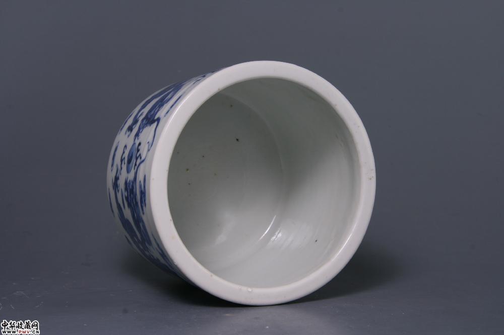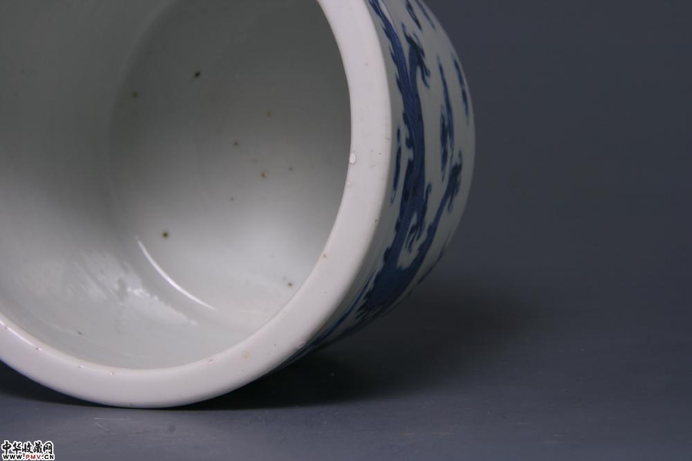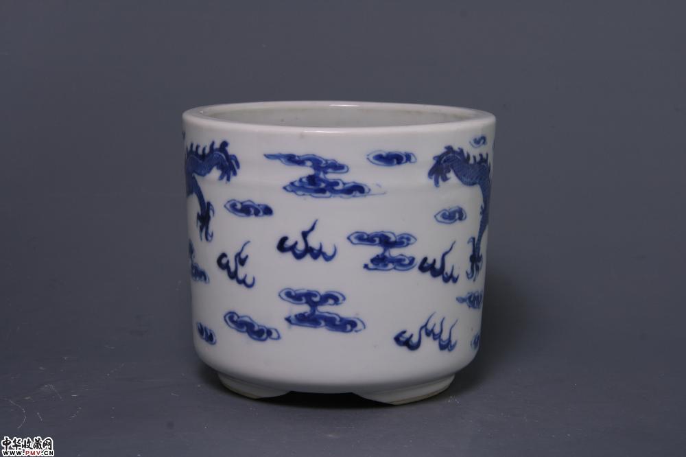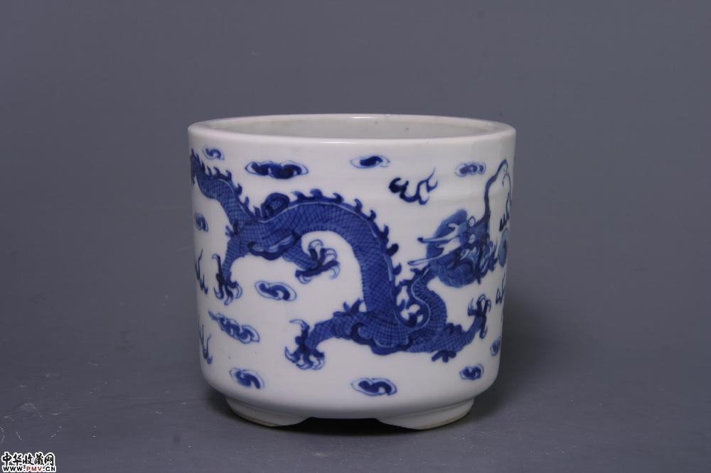 清光绪景德镇窑青花双龙戏珠纹筒式三足炉