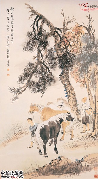 倪田 1913年作 受天百禄 立轴 设色纸本