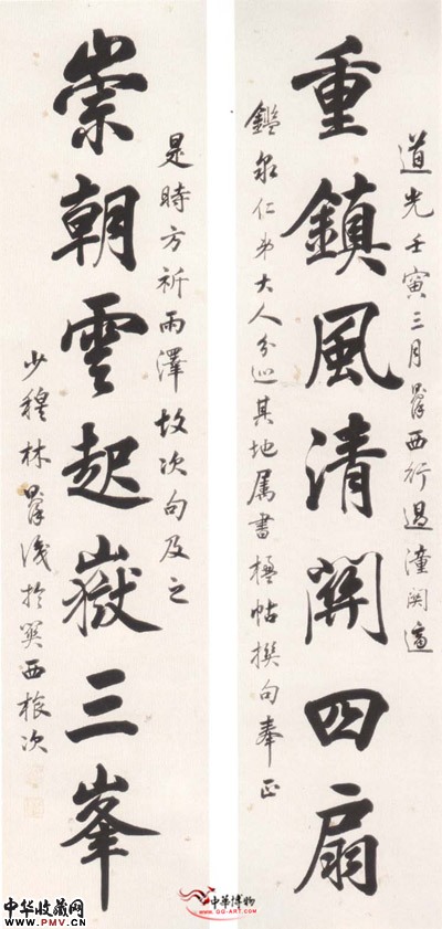清林则徐 七言行书联“重镇”