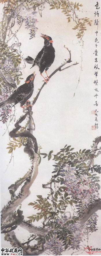近现代陆抑非 鸟语紫藤