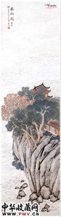 画面上茫茫的海面,水天一色,浪花飞舞,惊涛骇浪。海边上岩石古树楼阁屹立,阁观海,引导人们将视线转向画面的中心。山石用重墨勾勒,水以淡墨烘染,有虚有实,有浓有淡,并巧妙地留出空白作云气,使画面境界显得十分深远辽阔。自题:"观潮图写为静岩五兄先生雅属虚谷"。