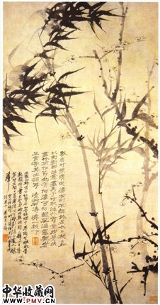 画上自题:或言竹叶有定法,否则不类于是个"上",枝上加以刻画而生意尽矣。……夫画竹不作节,尚有何法可拘……,点明了石涛画竹的与众不同和自有"法"可依而不必拘于陈法。