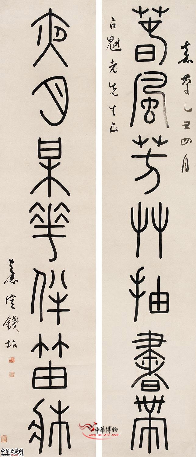 清钱坫 六言篆书对联