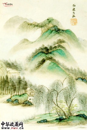 王鉴 一六六九年作 仿赵孟頫山水 立轴 设色纸本