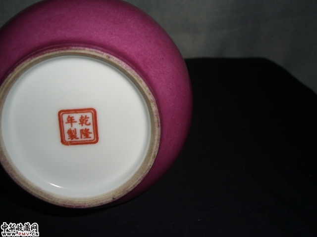 清乾隆年制款胭脂红蒜头瓶