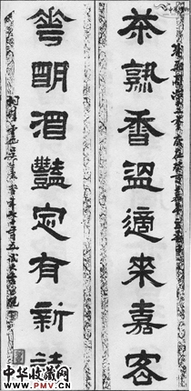 清吴廷康 八言隶书对联“茶熟”