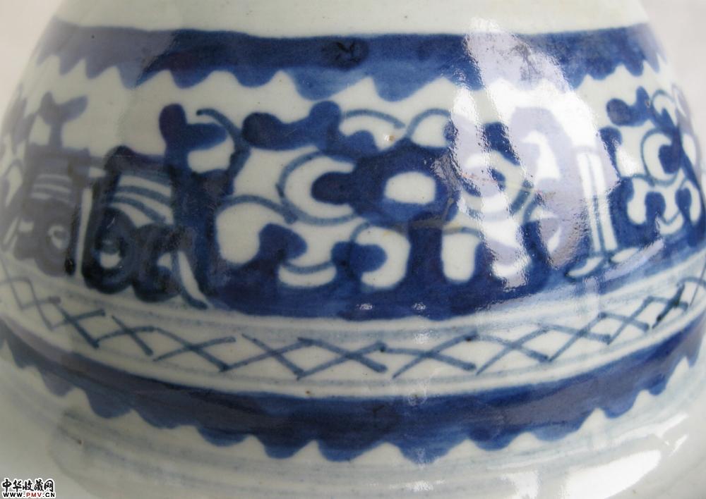 清光绪青花香炉,釉色莹润,青花发色纯正,全品相,圈足所见是窑粘,不是毛病,实物比图片漂得多.口径18公分,高8.2公分.起拍价220元.