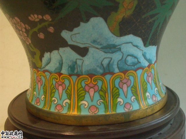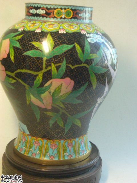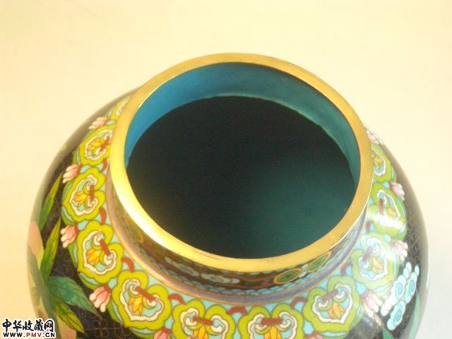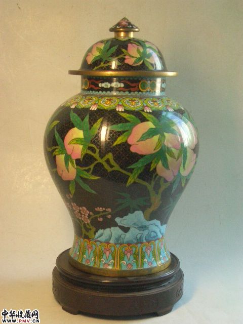 品相:保存完美全品相景泰蓝将军罐,九桃五蝠以及多层花卉边饰,精湛的掐丝珐琅工艺,大器罕见,底款“天昌利”与“老天利”等齐名,有极高的收藏价值。